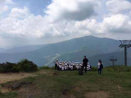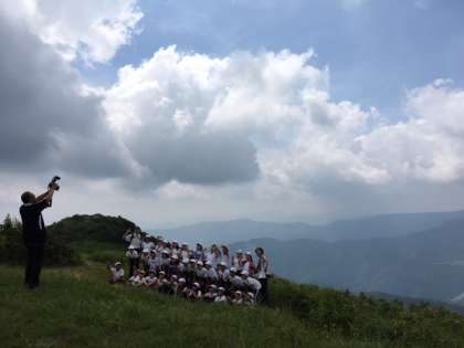 無事、全員で登ることができたので山頂でもクラス写真を撮りました。