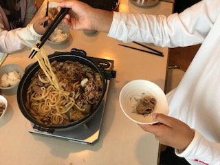 とても美味しそうなすき焼きを目の前に、目を輝かせながら大きな声で「ご飯の歌」を歌っていました。