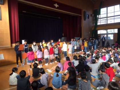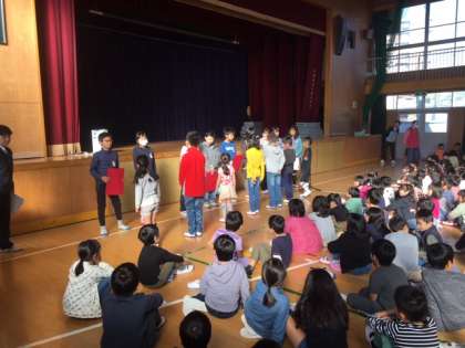 11月5日(月)の児童朝会で、健康強調週間で優秀だったクラスの表彰がありました。今年は、インフルエンザの流行も早くありました。これからも十分に予防につとめていったもらいたいものです。