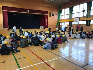 12月4日、今日は待ちに待った修学旅行です。10月から学級休業で延期になった修学旅行でしたが、今回は無事に行くことができました。心配された天気も、出発式では晴れていました。校長先生、PTA会長からも良い思い出を作りましょうとのお話がありました。それでは、行ってきます!