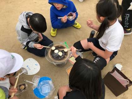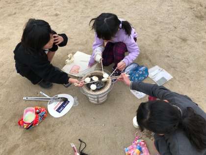 28日と29日に、3年生は各クラスで七輪体験としてお餅を焼いて食べました。