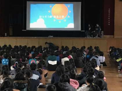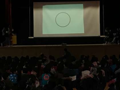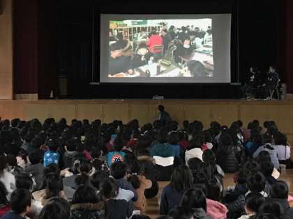 1月31日(木)の朝の会の時間に、講堂で放送委員会の発表がありました。