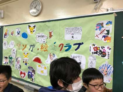 12日と13日の昼休みに漫画・絵画クラブの子どもたちが作った作品の展示会を開いています。