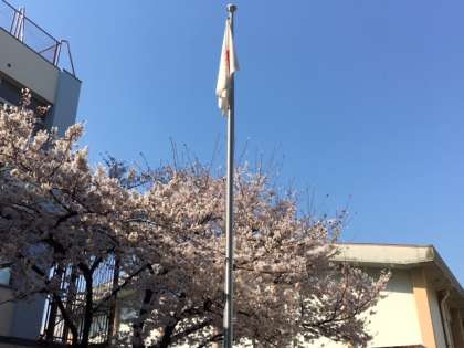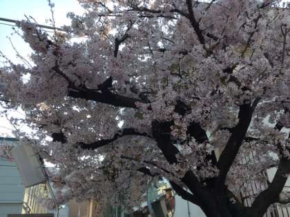 桜がきれいに咲いています。明日は、晴天と桜の下で入学式です!