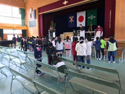 4日、今日は一足早く2年生と6年生が登校し、入学式の準備をしました。