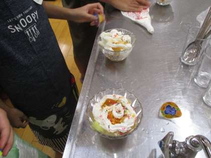 本日午後から瑞光中学校で、瑞光英語村が開催されました。小松小学校から6年生の希望者が参加しました。今日は英語を使ってパフェを作りました。瑞光中学校の生徒や他の小学校の児童と交流して、楽しく活動することができました。