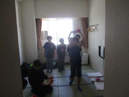 写真撮影の後、入室しています。プログラムは予定通りすすんでいます。しばらく部屋でゆっくりした後、1時20分から避難訓練をします。