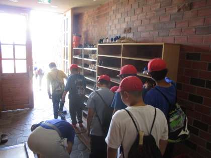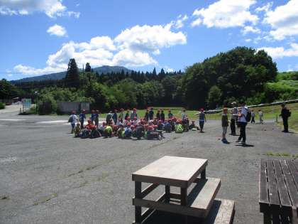 避難訓練をしました。広場に集合しそのままオリエンテーリングに向かいます。暑いのでオリエンテーリングは予定より短縮して実施します。