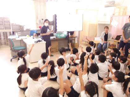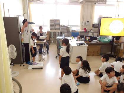1年生の発育測定では測定の際に食育を実施しています。保健室と栄養教諭の先生から朝ごはんの大切さを学びました。