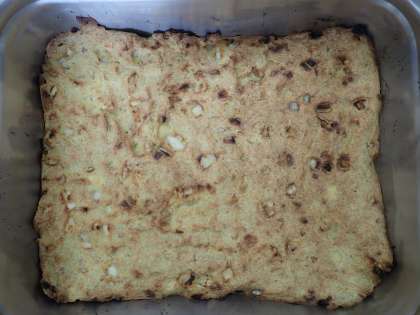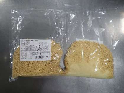 とうふローフは、ツナ、とうふ、細かくカットした大豆、たまねぎ、じゃがいもでん粉を混ぜ合わせ、砂糖、塩、こいくちしょうゆで味つけし、焼き物機で焼いています。