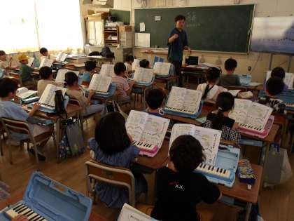 音楽では鍵盤ハーモニカで「かえるの合唱」に取り組みました。2列を1つのグループとして上手に連奏することができました。