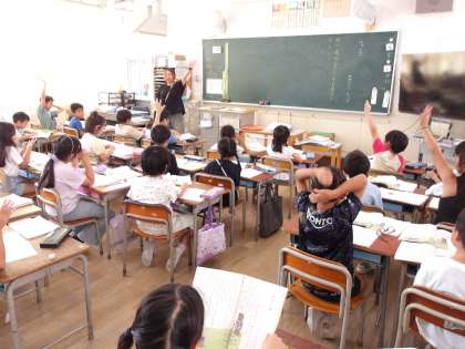 国語では「ニャーゴ」を読んで、みんなで意見を出し合って、場面の様子を読み取りました。