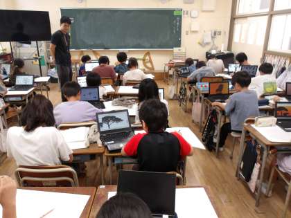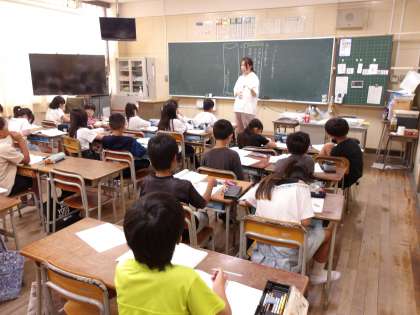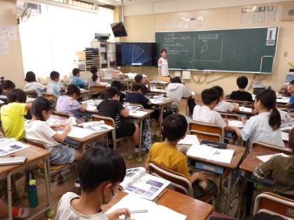 4年生の授業の様子です。図工は学習者用端末を使って作品の図案を考えています。理科は夏の大三角と日周運動について学習しました。国語は手紙の表書きの書き方を学習しました。