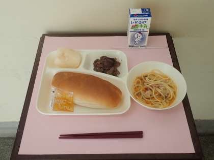 今日の給食には、日本なしの仲間で「二十世紀なし」というなしで、なしは年に1回出ます。