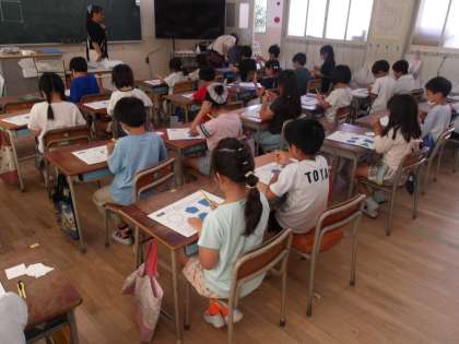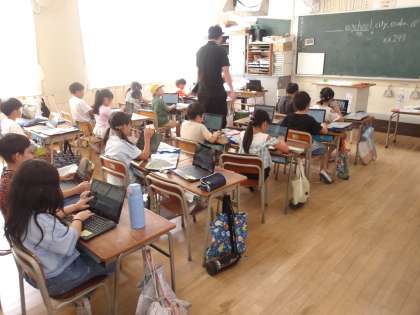 2年生の授業の様子です。図工ではカッターナイフの使い方を習いました。安全に道具を使うため、先生の話をしっかり聞いて作業に取り組みました。また、新しい端末の設定を行いました。