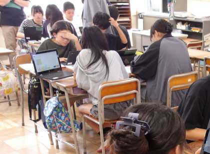 6年算数で円を含む図形の面積の求め方を、班で話し合い考えました。国語では「模型のまち」の単元で人物の関係について文章を読んで確認しました。