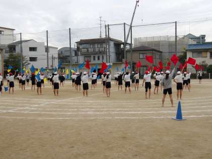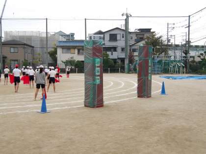 本日、入退場門を設置しました。着々と運動会の準備の準備を進めています。