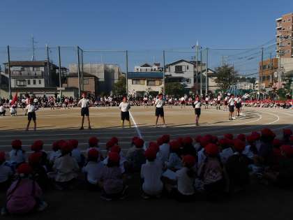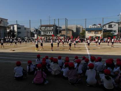 本日は、雲一つない晴天となりました。開会式の応援団による応援合戦です。