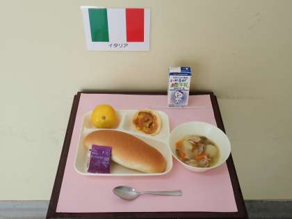 大阪市の給食では、イタリアのほかに、中国や韓国・朝鮮、インド、スペイン、ドイツ、フランスなどいろいろな国の料理が出ます。