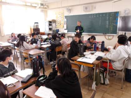 6年生の授業の様子です。英語では"I want 〜"の学習で、将来なりたい職業について会話文を考えました。国語では「プレゼンテーションをしよう」の単元で班で議題について話し合いました。