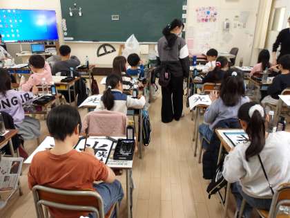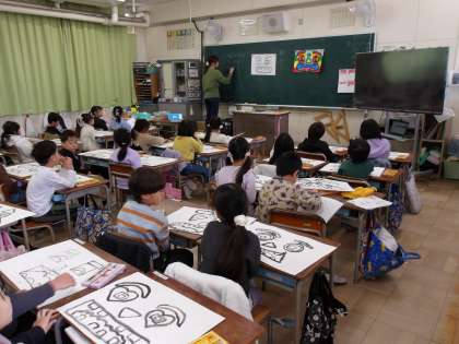 1年生の図工、2年生の体育、3年生の書写の様子です。