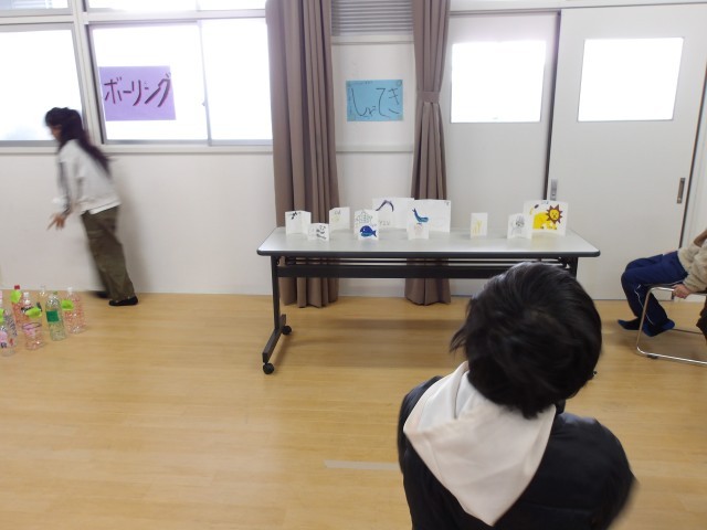 今日のなかよしタイムは「お店を開いて、みんなで遊ぼう」でした。「さかなつり」「ボーリング」「しゃてき」の3つのお店に分かれてこれまで準備してきたお店を開店しました。自分の役割にしっかりと取り組み、ルールを守り楽しく活動することができました。