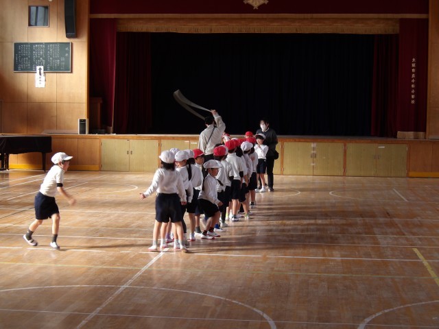 今日は少し暖かく、体育の授業も取り組みやすい気候になっています。1年生はなわとび、4年生は持久走に取り組んでいます。
