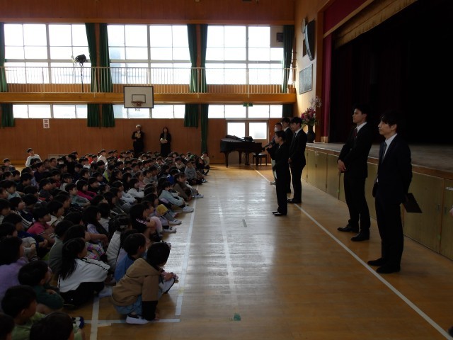 春休みが終わって、子どもたちが元気に登校してきました。1年生は学級で担任の先生と過ごしました。2~6年生は、離着任した教職員の紹介の後、始業式を行いました。始業式のあと、学年ごとにクラス発表を行い、学級開きをしました。今年度のスタートも小松の子どもたちは話を聞く態度もよく、大きな声で校歌を歌うことができました。これからの成長が楽しみです。