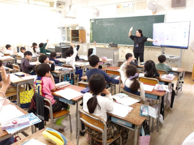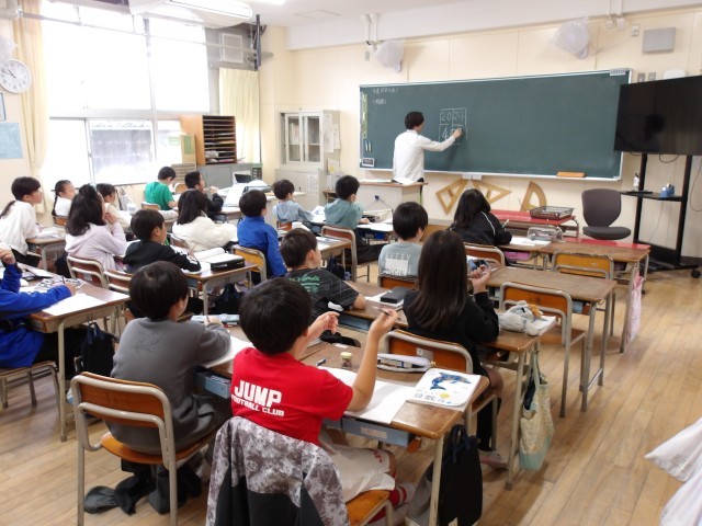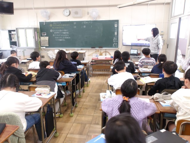6年社会、5年理科、4年算数、3年国語、2年算数、1年音楽の様子です。