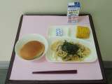 今日の給食は、 *1/2黒糖パン *ウインナーときのこの和風スパゲッティ *焼き...