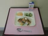 今日の給食は、 *中華丼 *きゅうりのピリ辛あえ *白桃(缶) *牛乳 です。 ...