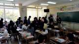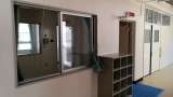 高い天井の普通教室です。 新校舎では、2クラスの教室があります。何年何組かな〜?...