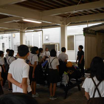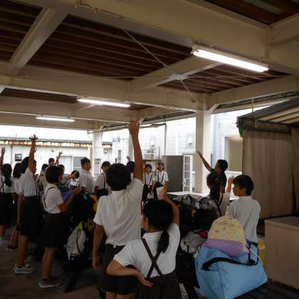 現地に到着。さっそく開舎式です。宿舎の方と元気にあいさつをしました。