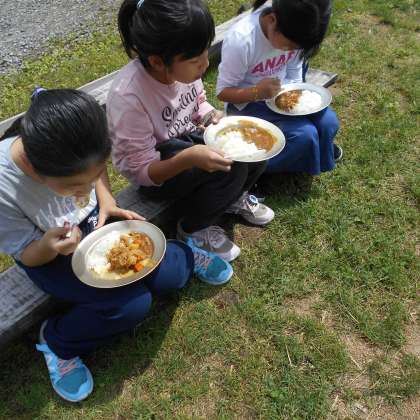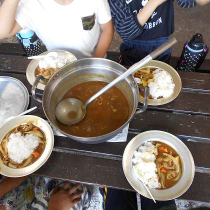 火おこしがたいへんでしたが、みんなおいしいカレーができあがりました。
