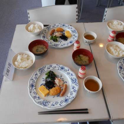 2日めの朝食は、和食です。みんな残さず食べよう。