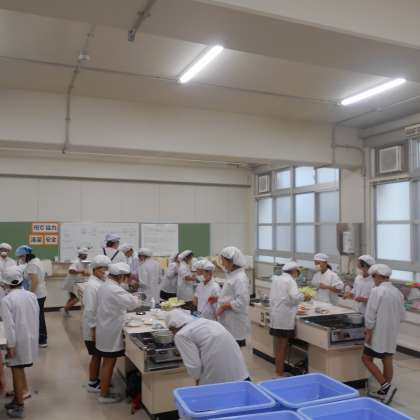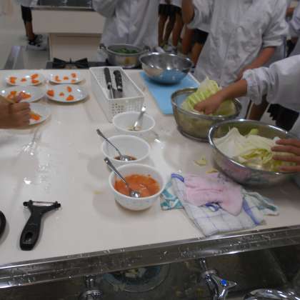 5年生の家庭科の学習で、調理実習を実施しました。「ゆで野菜」と「ドレッシング」です。各班で工夫を凝らしたドレッシングができあがりました。