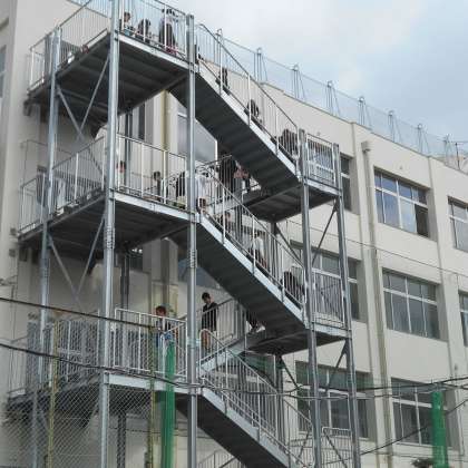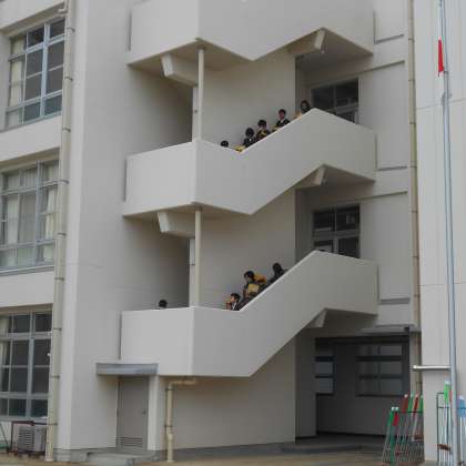 地震や津波を想定した避難訓練を実施しました。下新庄保育所のお友達も本校への避難をしました。高学年の児童とともに校舎の高いところへ避難しました。緊急用の非常階段も使用しました。