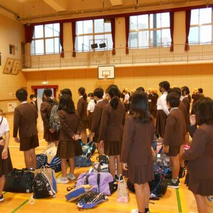 あいにくの雨のために、講堂での帰校式となりました。全員無事に帰ってきました。お出迎えいただいた皆様ありがとうございました。