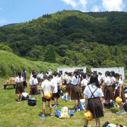 ようやくハチ高原に到着しました。開舎式を行い、お昼のお弁当をいた