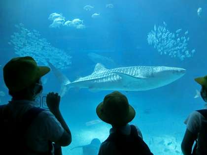 目の前を優雅に泳ぐ魚の様子に見とれていました。お弁当もおいしくいただきました。