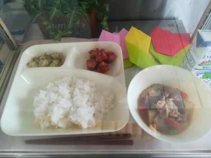 4/18 今日の給食は「まぐろのオーロラ煮」ほか