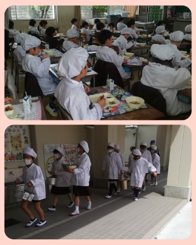 上の写真の2枚目の写真は、1年生が食べているところ