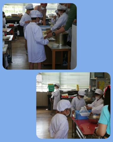 写真は3年生の給食準備のようすです