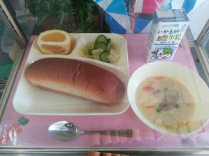5/11 今日の給食は「コーンクリームシチュー」ほか