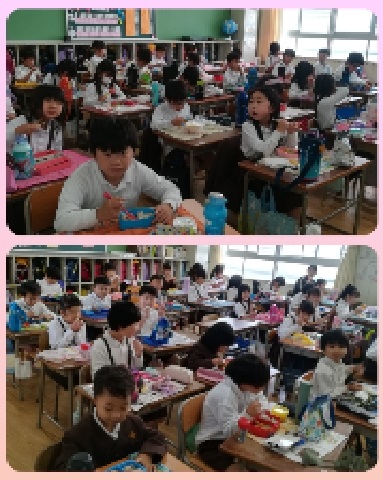 1,2年生は遠足の予定だったため、お弁当です。
