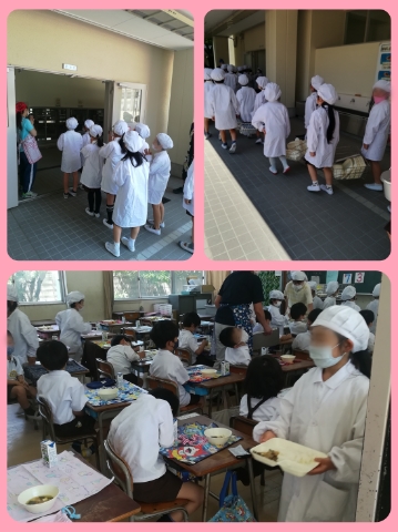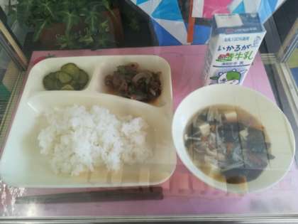 あすの給食は(パン食)「ケチャップ煮」ほか です。