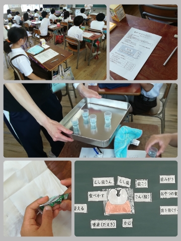 歯科衛生士の方に来ていただき説明を受け、フッ化物洗口を行いました。
