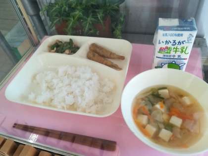 6/3 今日の給食は「イワシの天ぷら」ほか