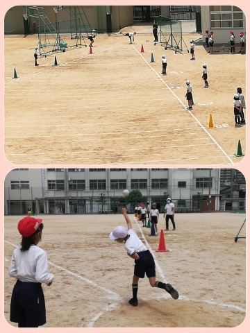 今日は、スポーツテスト(ソフトボール投げ)を行っています。