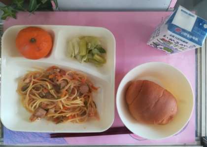 7/7 今日の給食は「チキントマトスパゲティ」ほか